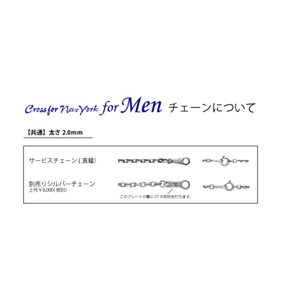 別売りシルバーチェーンは、クロスフォーニューヨーク for Men Dancing Stoneシリーズのメンズクロスフォーの別売りシルバーチェーンです。標準は、真鍮を燻し加工ておりますが、別売りシルバーチェーンは、シルバー925(燻し加工)を使用しています。